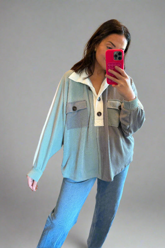 Colorblock Zip Up Jacket | Blue, Navy, Mint & Green